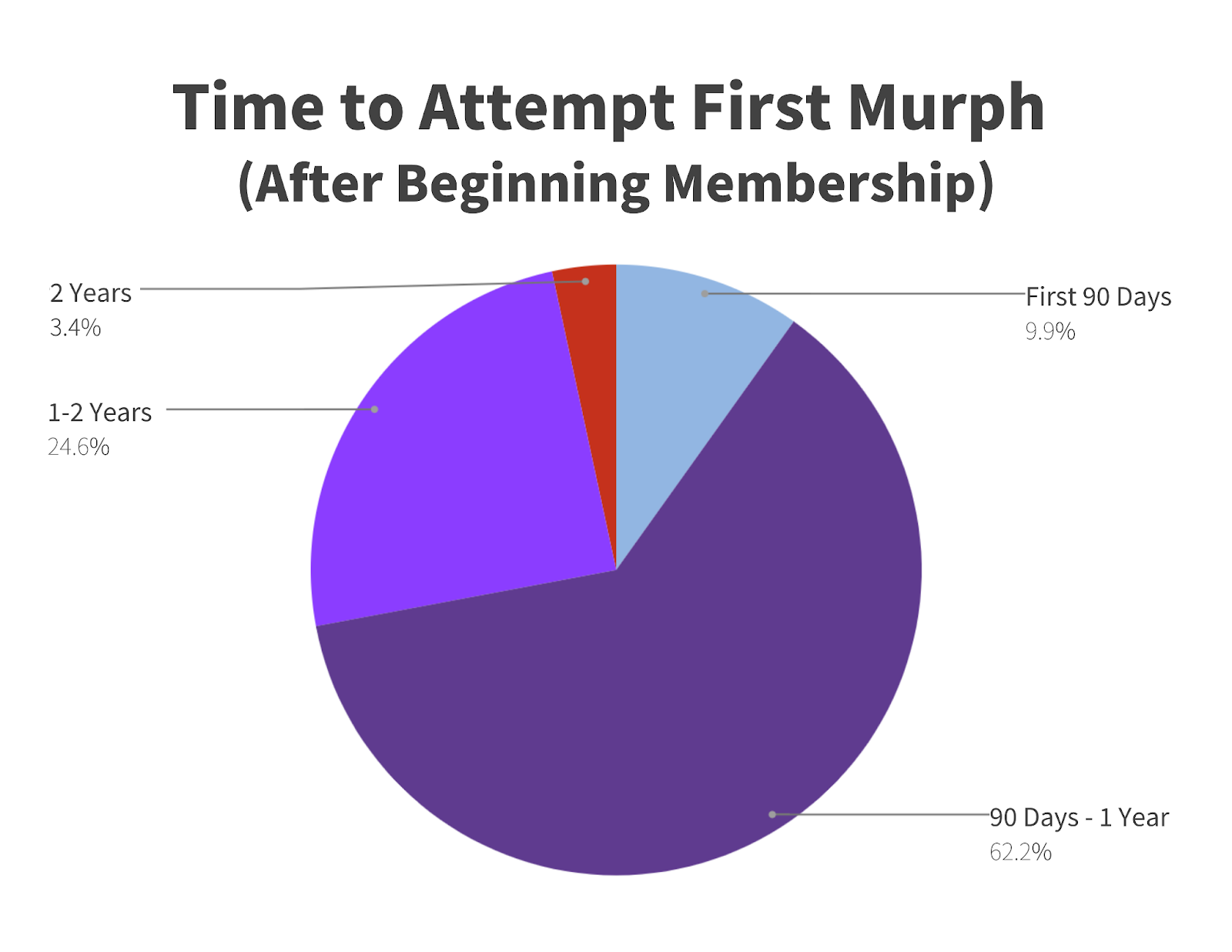 - The vast majority of new clients, 62%, attempted Murph between the first 90 days and 1 year