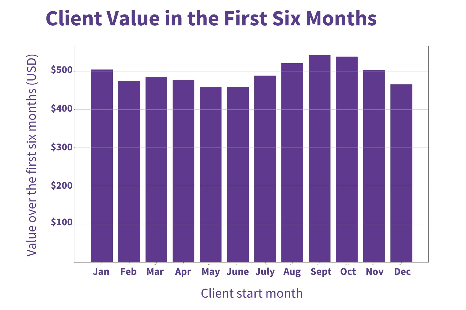 So, does the month a client joins in actually affect the clients’ six-month value? The short answer, YES.