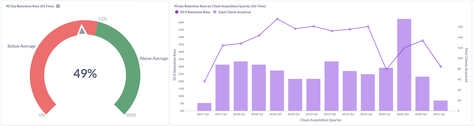 Our finding that utilizing client performance tracking increases 90 day retention rates is two-fold, so let’s break it down:
