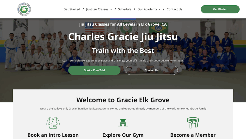 2. Charles Gracie Jiu Jitsu Academy, Elk Grove: Clean, confident, and conversion-optimized website