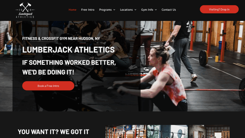 Lumberjack’s website captures the gym’s raw-meets-modern aesthetic through bold colors, CrossFit box photography, clean typography, and copywriting that’s full of personality. The authentic photography from inside the gym builds trust, while the tone is both confident and approachable. “If something worked better, we’d be doing it!”