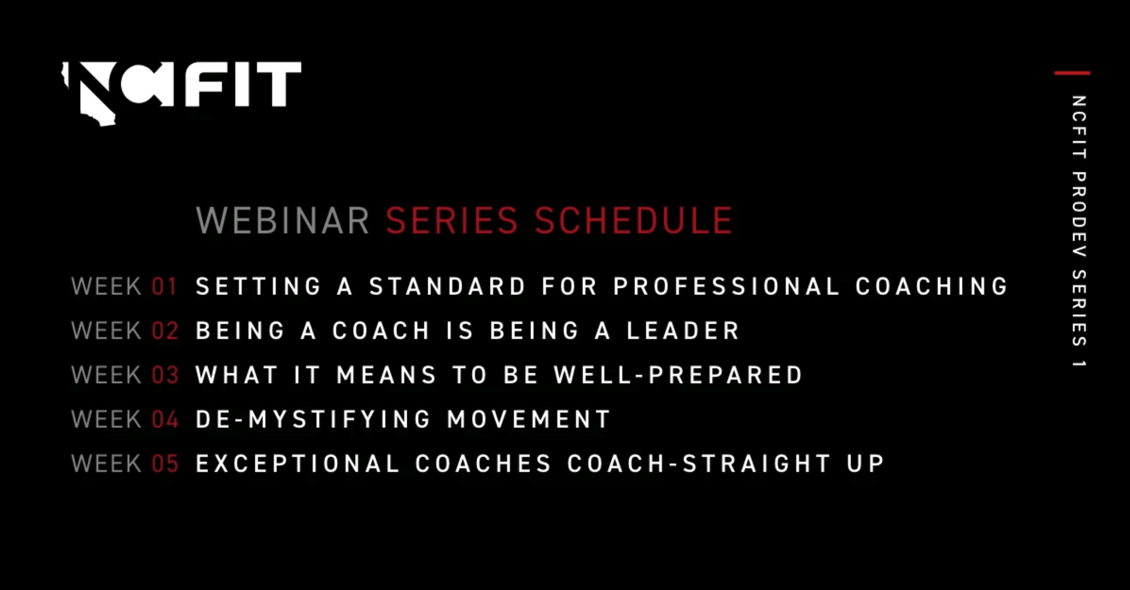 NCFIT ProDev Series 1 is for anyone that is not willing to settle for being just a good coach. Throughout these five weeks, the NCFIT team will unpack what it takes to go from good to great through actionable information and interactive Q and A.