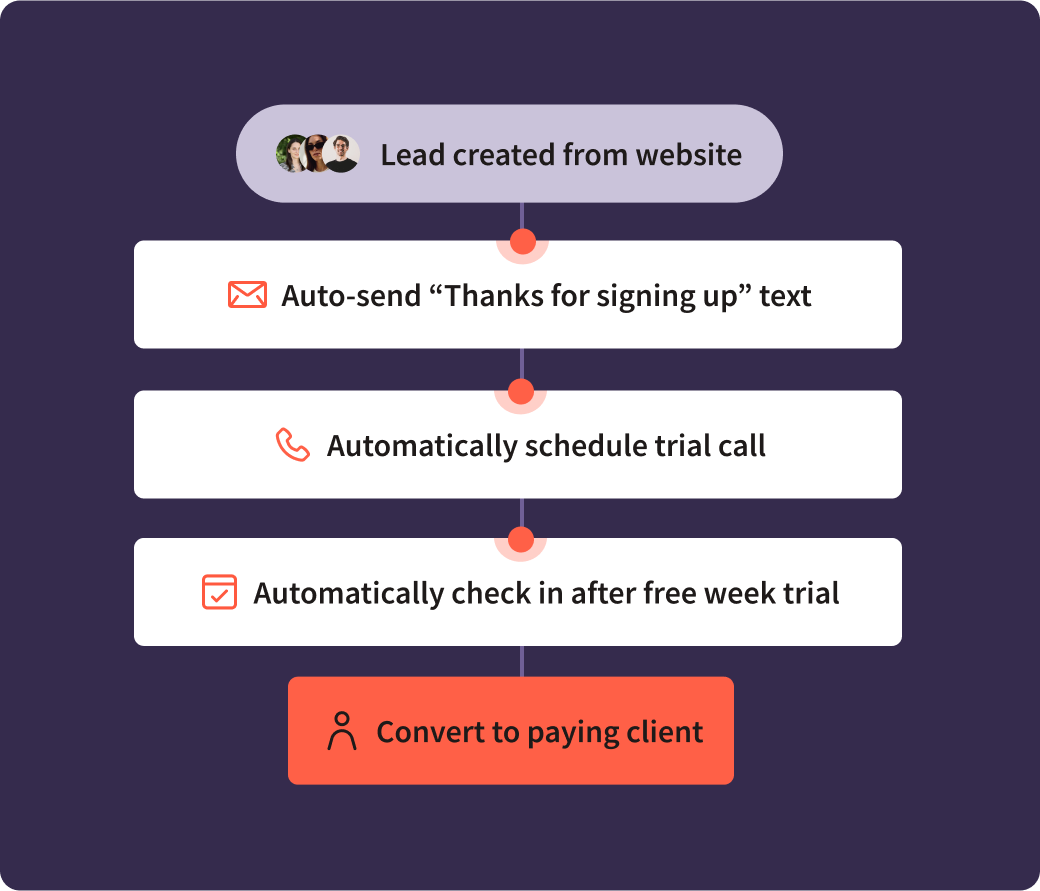 Get started fast with pre-built automations designed to convert leads, onboard members, and boost retention at your gym or studio. Just choose a Workflow and hit go.