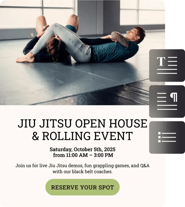 Wodify offers Jiu-Jitsu academy owners a comprehensive management software that automates belt tracking and attendance and manages billing and student account details in one place. It helps keep students engaged with progress tracking, communication tools and on-demand content so they stay disciplined and keep coming back. With admin on autopilot and your systems running smoothly, you’ll have more time to grow your academy and build a stronger community on the mats.